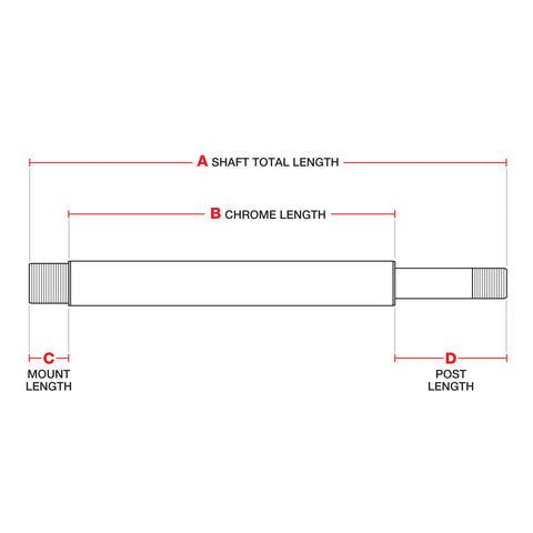Includes (1) Shaft. Confirm measurements! 12.5mm OD x (select length) Post: 3/8-24 x 1.15" Mount: 7/16-20 x .45"
